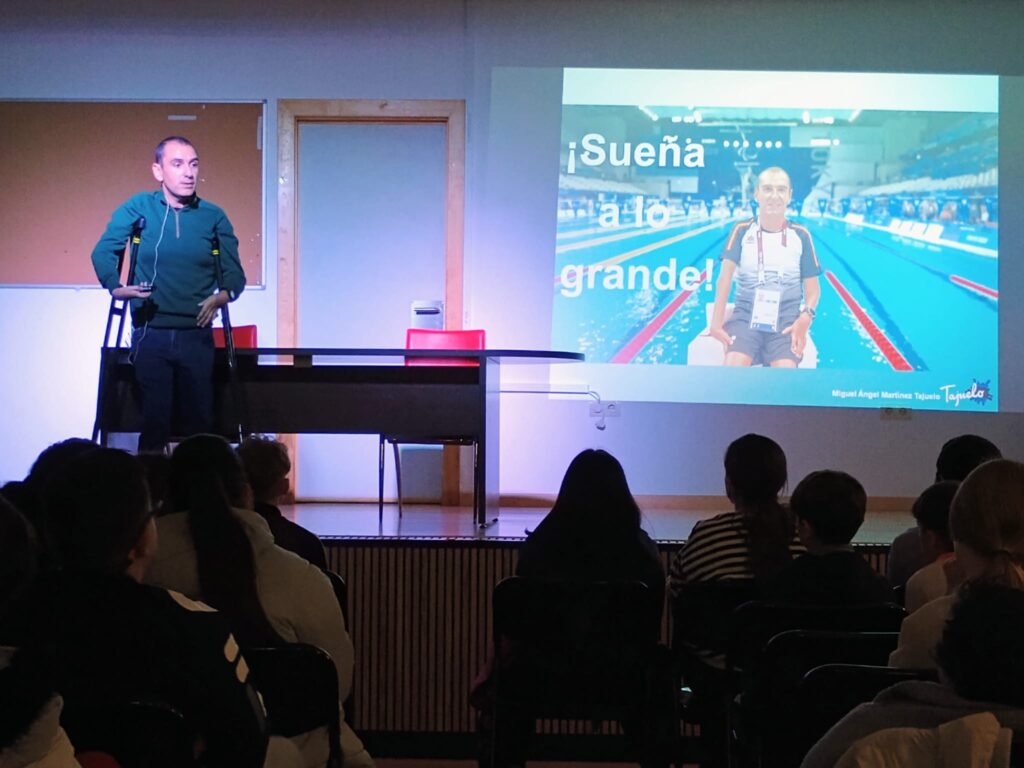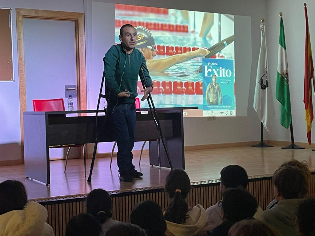 Ayer, nuestra comunidad educativa tuvo el privilegio de recibir una visita realmente inspiradora. Los alumnos del IES Pablo Rueda y del CEIP Miguel Hern谩ndez participaron en una emotiva charla impartida por Miguel 脕ngel Mart铆nez Tajuelo, destacado nadador paral铆mpico de And煤jar.